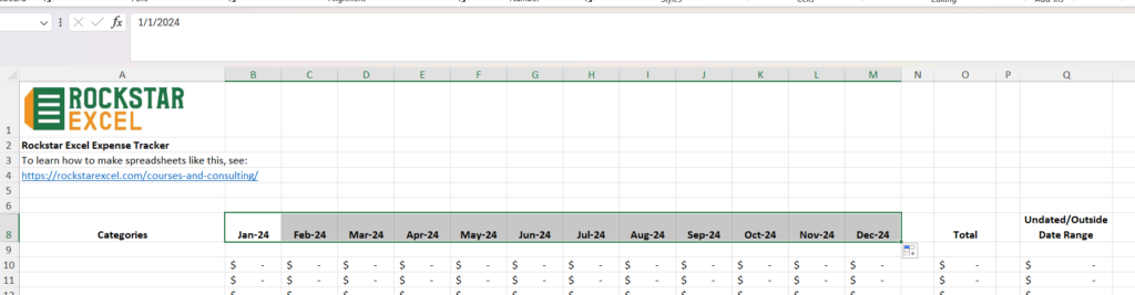 How to extend the Excel Expense Tracker to cover additional months